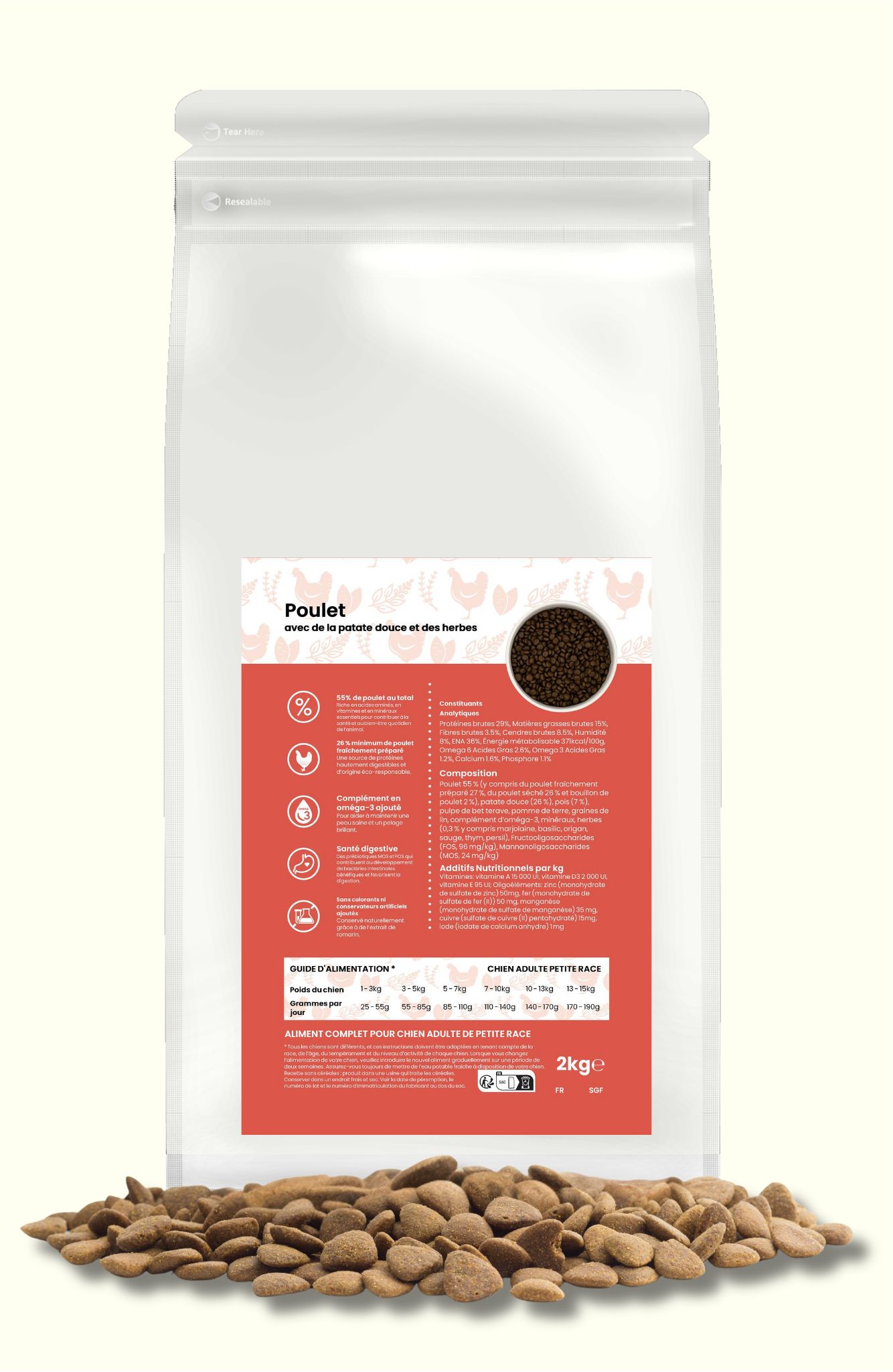 CROQUETTES PETIT CHIEN ADULTE POULET, PATATE DOUCE ET DES HERBES